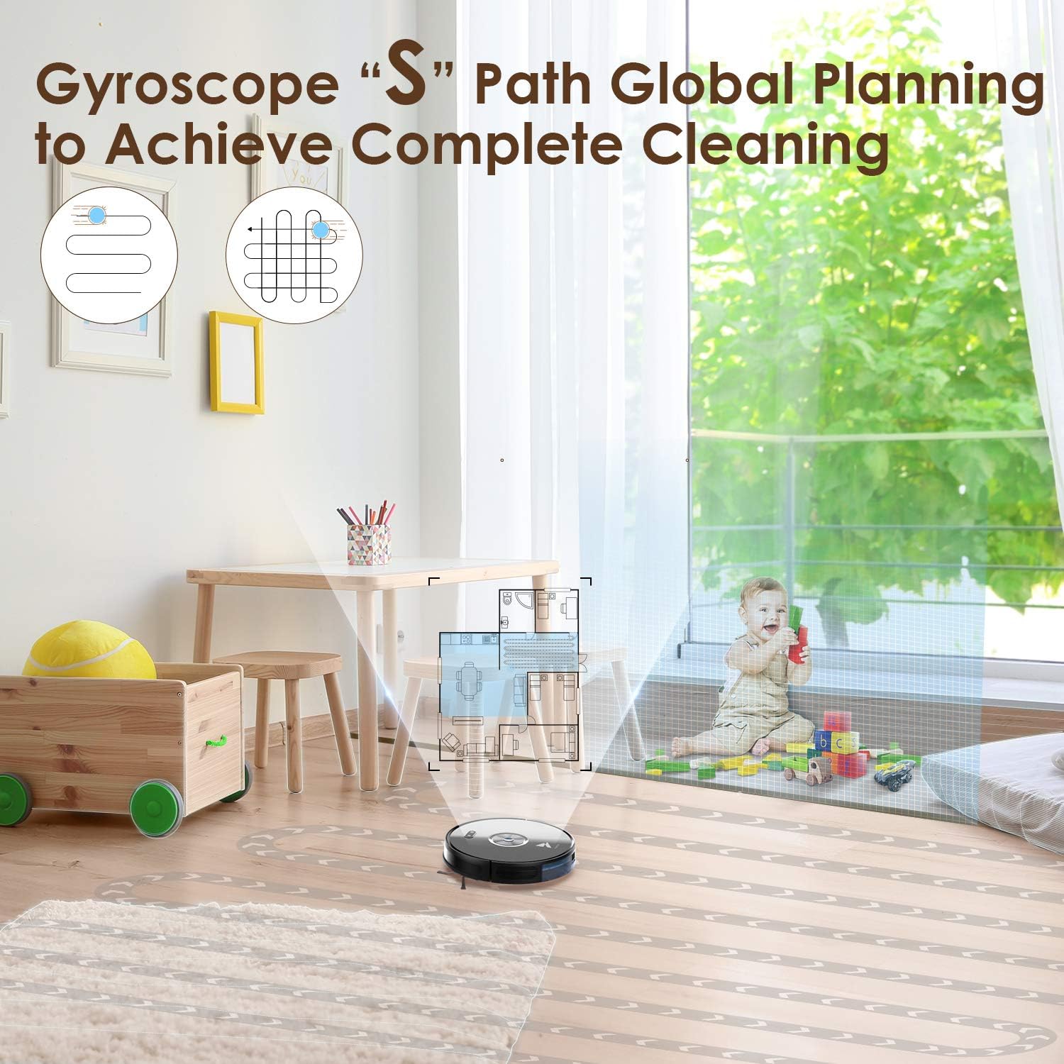 ↬Ⓔ【Aspirazione Potente 1500 Pa & Design Ultrasottile e Silenzioso】Il Robot Aspirapolvere Hosome utilizza un motore brushless di alta qualità che fornisce un'aspirazione fino a 1500Pa. Basso consumo energetico e design liscio del condotto dell'aria, Funzionamento silenzioso (circa 55 dBA). L'altezza del corpo del prodotto è di soli 7,2cm, il che lo rende non solo squisito in termini di aspetto, ma entra anche facilmente nella parte inferiore della maggior parte dei mobili per una pulizia profonda,