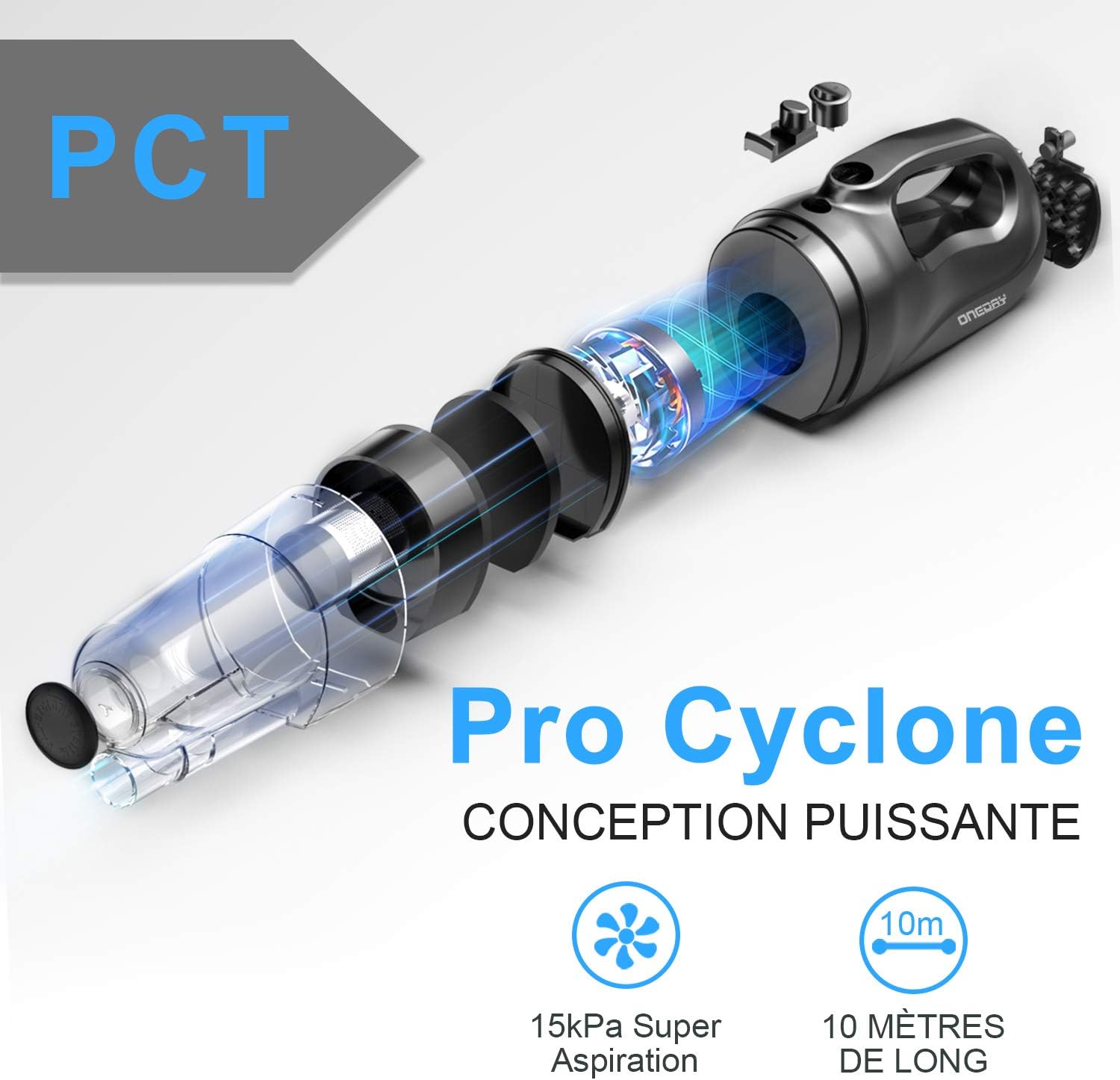 Ⓝ✹Plug and Play è più semplice: Aspirapolvere per casa ONEDAY è lunga 10m, area di utilizzo di 200 metri quadrati, senza sostituzione frequente della presa.